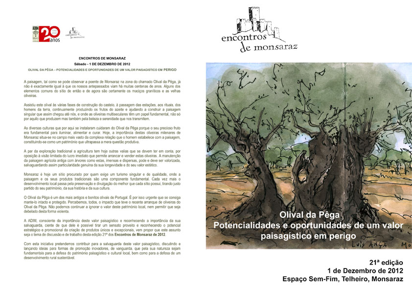 A ADIM, consciente da importância deste valor paisagístico e reconhecendo a importância da sua salvaguarda, ciente de que dele é possível tirar um sensato proveito e reconhecendo o potencial estratégico e promocional da criação de produtos únicos e excepcionais, vem propor que este assunto seja o tema de discussão e de trabalho desta edição 21ª dos Encontros de Monsaraz de 2012.